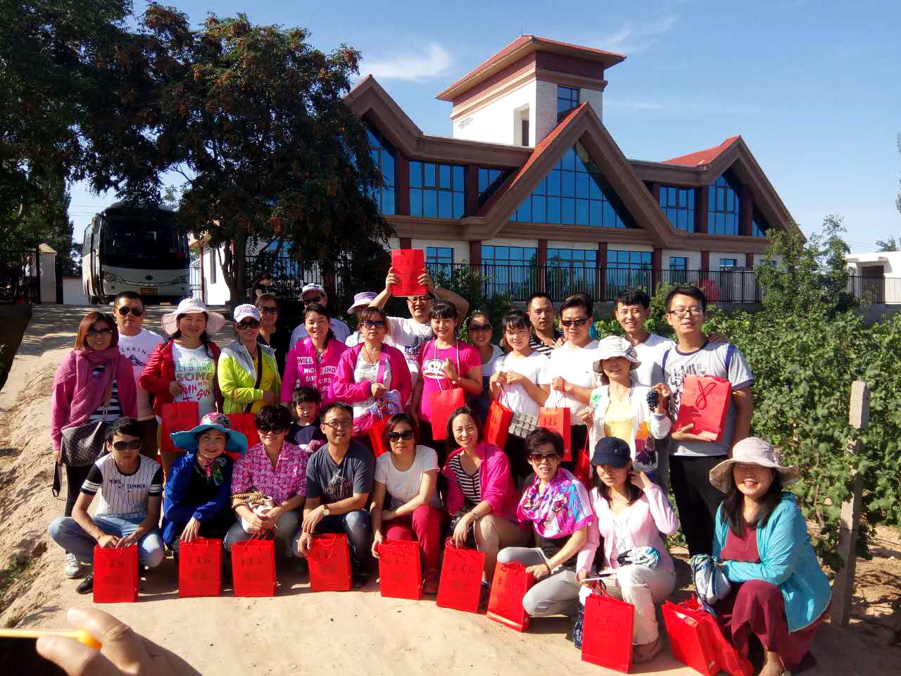 9月4號一大早,一個由30多人組成的團隊集結在寧夏紅銀川總部,他們從這里出發,直達中寧、中衛,應寧夏紅集團邀請參加今年入秋以來的第一場“枸杞、葡萄雙果采摘一日游”活動。美女帶著閨蜜,老公帶著老婆,大人帶著孩子……他們在寧夏紅枸杞和葡萄基地、酒莊參觀游玩,品飲試吃,用自己的親身體驗向大家證明,一個美好而又難忘的周末該如何度過?