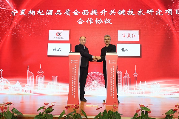為進一步擴大枸杞酒在國內、國際上的影響力,共建“中國枸杞酒產區”,把“中衛全系列枸杞酒”打造成國內外知名品牌,中國酒業協會分別與寧夏中衛市政府和寧夏紅枸杞產業有限公司舉行項目簽約儀式,這也是中國酒業協會產業創新技術研究院成立之際的首個簽約項目。項目將圍繞生產寧夏紅高端白酒、寧夏紅發酵酒,及寧夏枸杞風味及生物活性物質提取與應用技術展開研究,實現寧夏紅酒品質與品牌的全面提升目標。